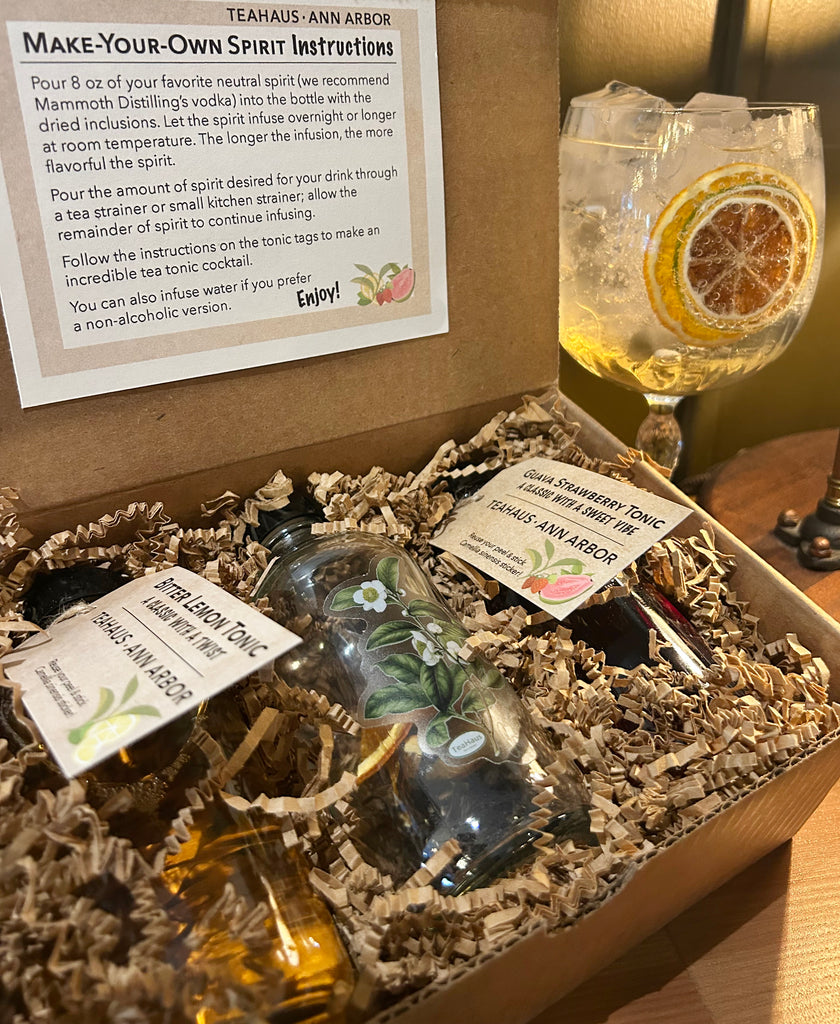 The TeaHaus Gin & Tonic stands apart from the rest because we use our own tea-infused tonic, which adds layers of complexity. So our gift set includes: